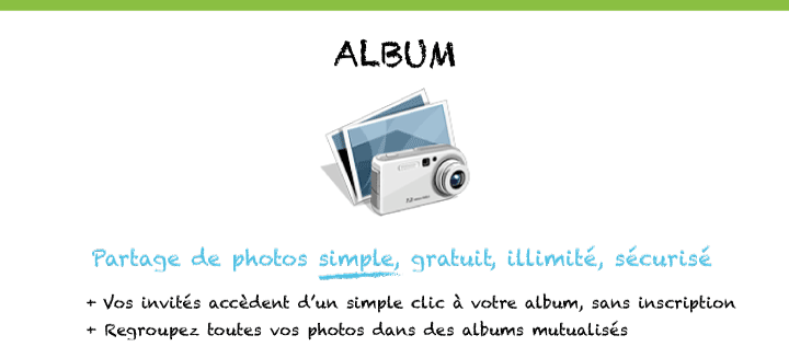 invitation personnelle et sécurisée par mail qui leur permet de visiter votre album sans créer de compte !